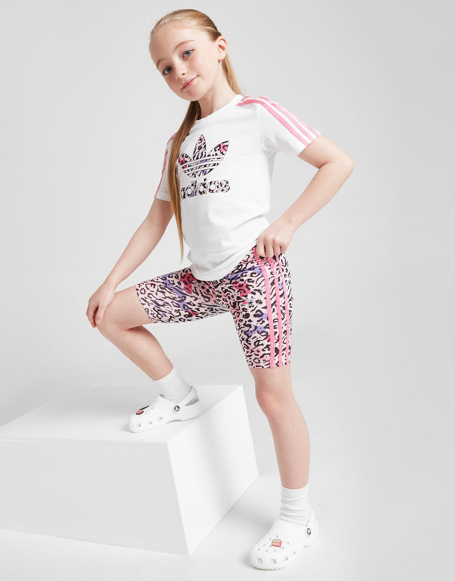 White Adidas Originals Girls Leopard T Shirt Cycle Shorts Set Children Jd Sports